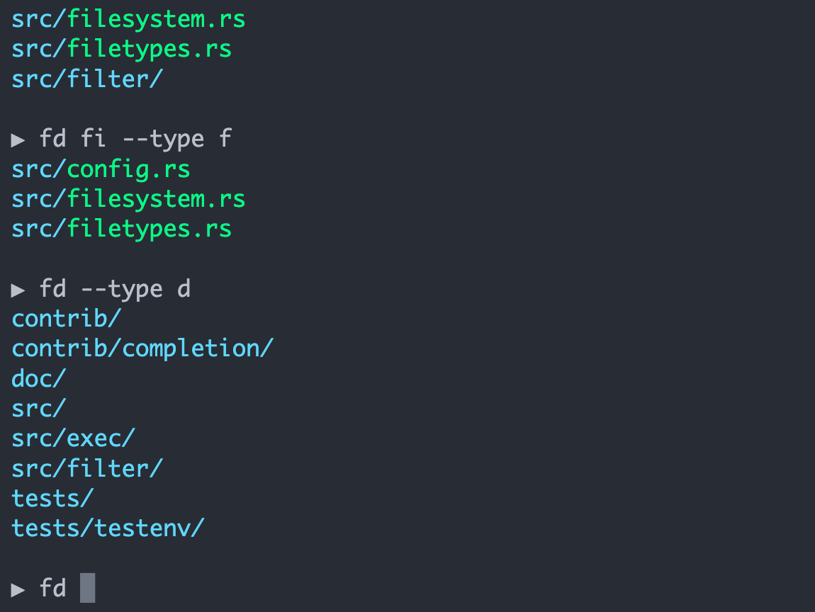 fd is a program to find entries in your filesystem. It is a simple, fast and user-friendly alternative to find. While it does not aim to support all of find's powerful functionality, it provides sensible (opinionated) defaults for a majority of use cases.