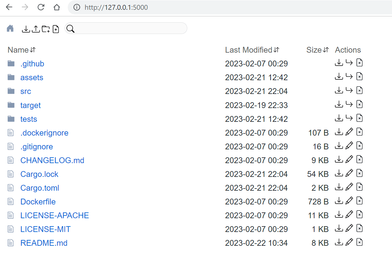 Dufs is a distinctive utility file server that supports static serving, uploading, searching, accessing control, webdav...