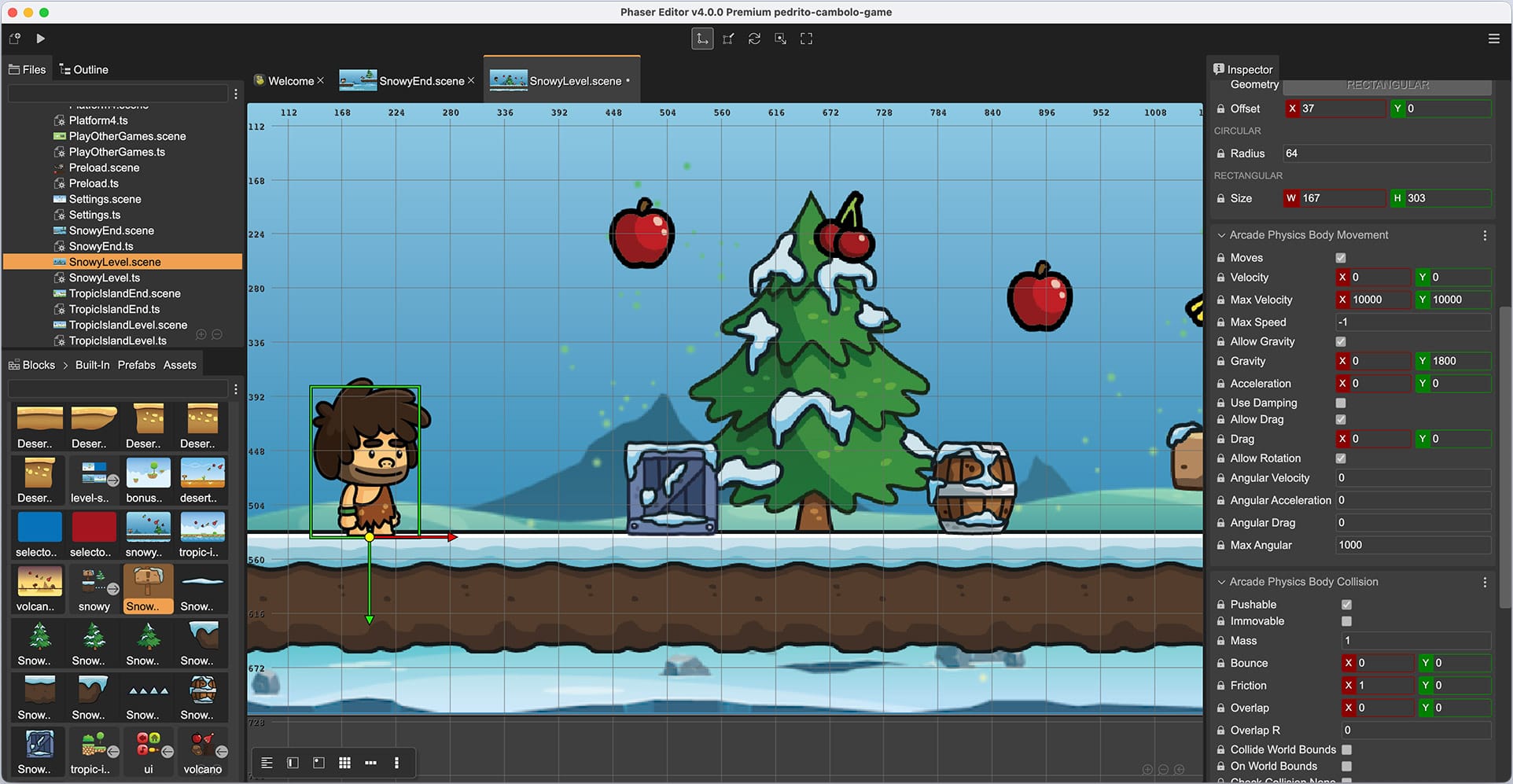 - Pros: Easy for beginners, built-in drag-and-drop, good for 2D games.