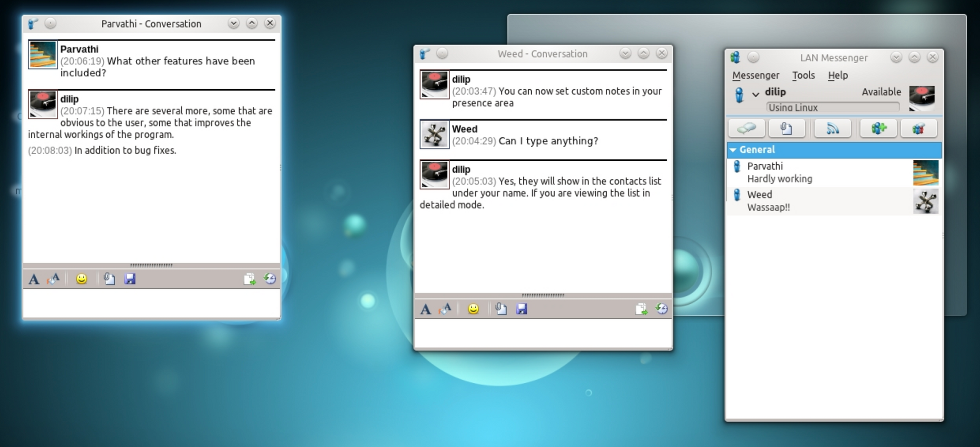 For LAN messaging between clinic staff, Squiggle is a simple, open-source solution. It’s local, it’s secure, and it works great in a small clinic environment where staff needs to send quick messages to each other over the internal network without internet access.