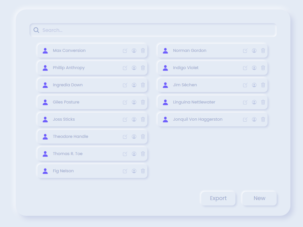 - Account cards for each person in the database