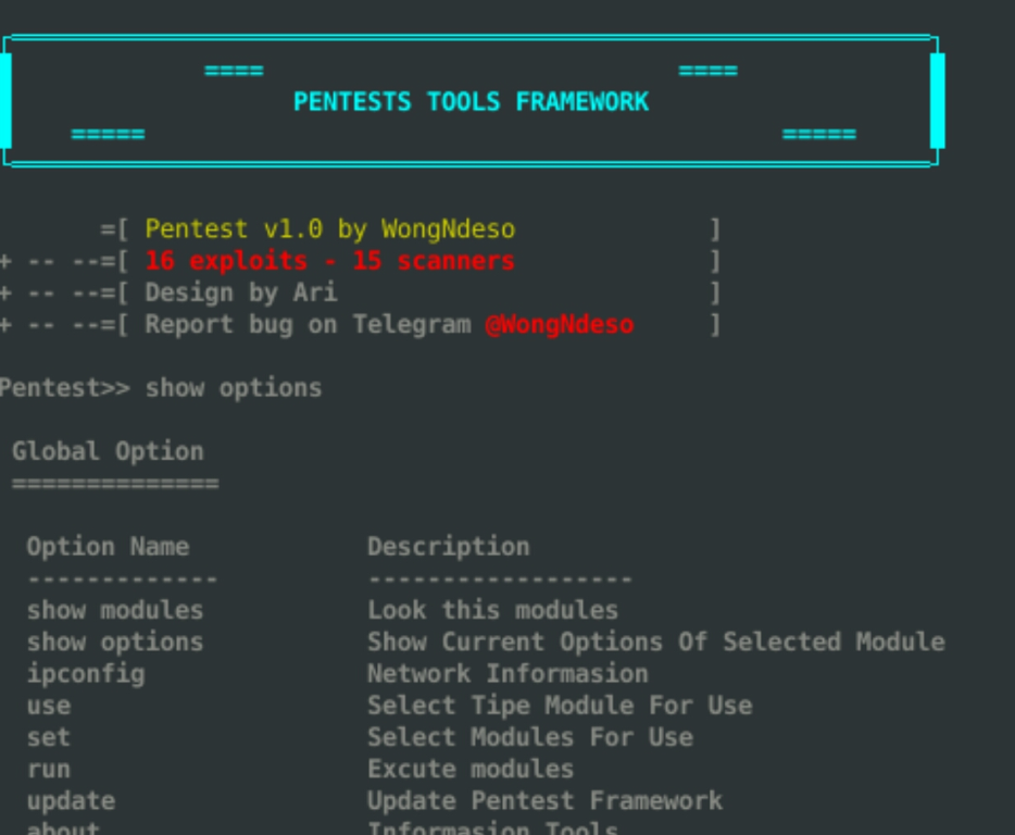 4- Pentest Tools Framework (exploits, Scanner, Password.)
