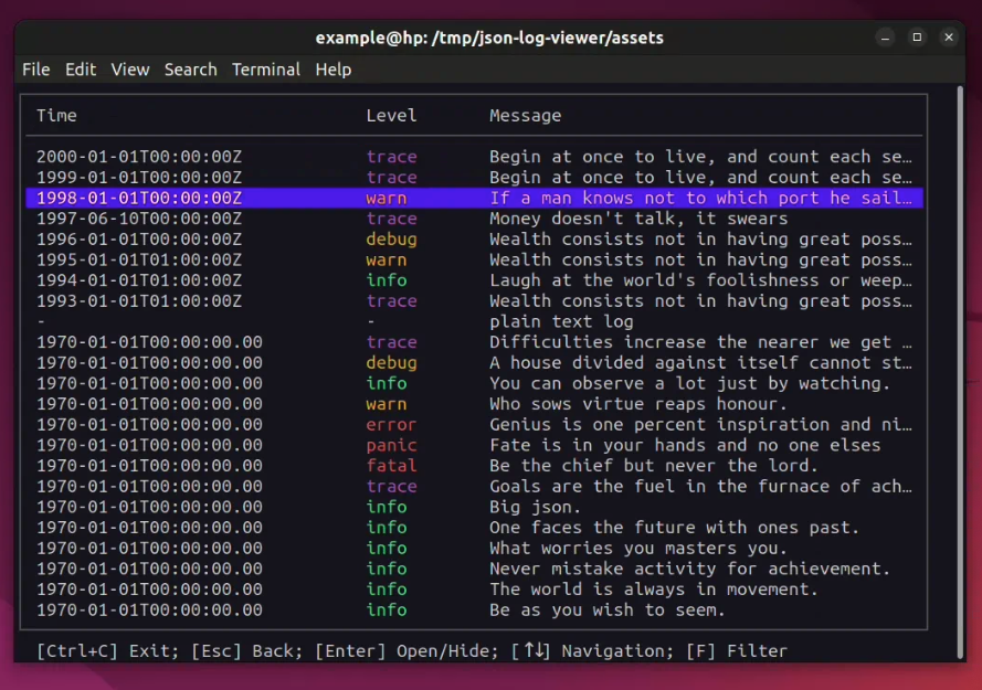 The Logfile Navigator is a terminal log file viewer for Linux, and macOS.
